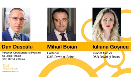 09 Mai 2024 Dan Dascălu (Partener), Mihail Boian (Partener) și Iulia Goșnea (Avocat Senior) - D&B David și Baias