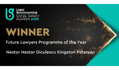 Nestor Nestor Diculescu Kingston Petersen (NNDKP) a fost desemnată câștigătoarea premiului Future Lawyers Programme of the Year în cadrul ediției 2025 a premiilor EMEA Social Impact Awards acordate de Legal Benchmarking Group, pentru programele dedicate viitoarelor generații de profesioniști în domeniul juridic. Premiul reconfirmă angajamentul NNDKP de a sprijini tinerii profesioniști în domeniul dreptului, prin inițiative educaționale adaptate nevoilor acestora, ce îmbină cunoștințele teoretice cu experiența practică, oferindu-le resursele și mentoratul necesare pentru a-și dezvolta competențele.